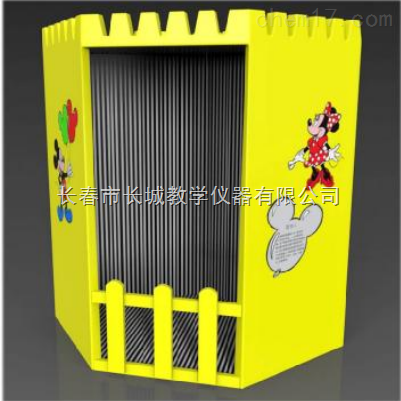 描述:本展项需要两个人一起互动,一人到屋内演示,一人在屋外观看,这个展品利用平面镜成像的原理让屋外的观众看不到屋内的观众,由于镜像的原因屋内观众的下半身被隐藏,外面的观众只看到屋内观众的以下部分,比如:头或手,非常神奇。